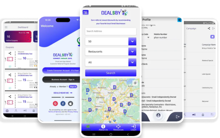 Dealsby is designed to connect local small businesses with consumers through innovative Customer Referral Sharing Technology. The platform enables businesses to create, launch, and manage web and app-based customer referral programs that leverage geolocation technology, aiming to increase foot traffic and customer acquisition.